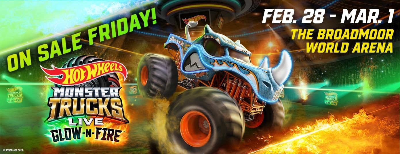 Hot Wheels Monster Trucks Live™ Glow-N-Fire Show is coming to Colorado Springs for three shows from Saturday, February 28 to Sunday, March 1! Tickets go on sale on Friday, November 7, at 10am and are available online at AXS.com or in person at the Pikes Peak Center box office (the box office at The Broadmoor World Arena is closed).
