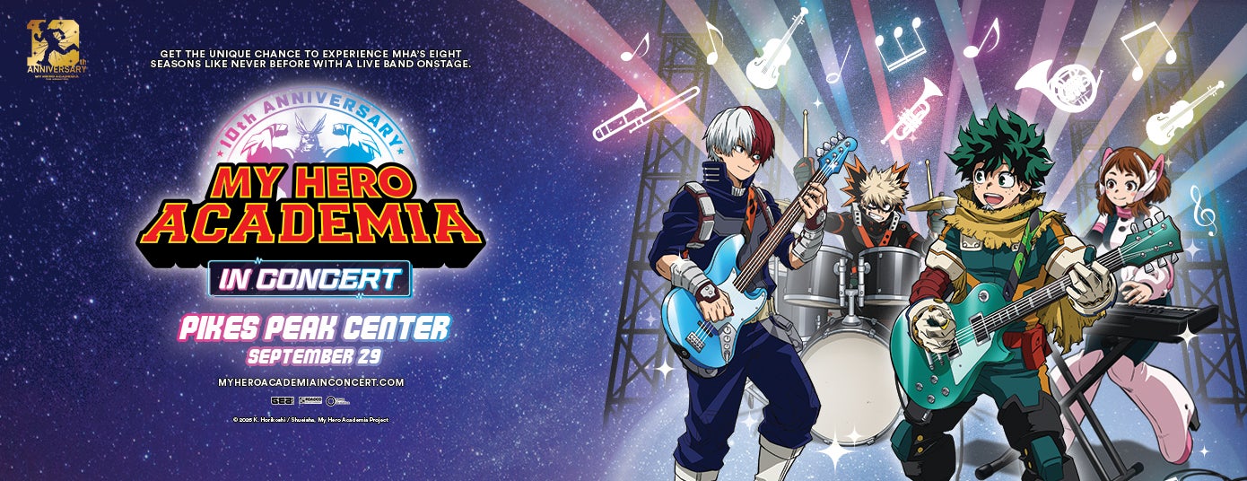 My Hero Academia In Concert is coming to Pikes Peak Center on Tuesday, September 29, 2026 at 7:30pm! Tickets go on sale on Friday, April 24, at 10am and are available online at AXS.com or in person at the Pikes Peak Center box office.